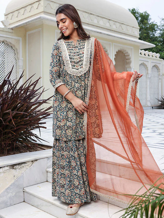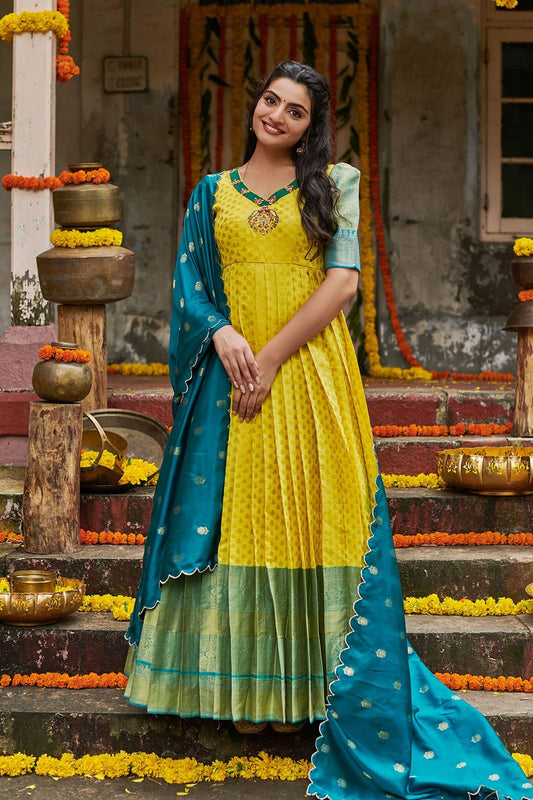 Brocade Woven Design Kurta with Palazzo and Dupatta